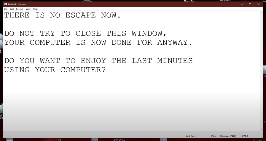 프로그램을 열러고 하면, 프로그래이 열리는 대신 메모장이 열리고 바이러스 스스로가 글씨를 쓰기 시작합니다.